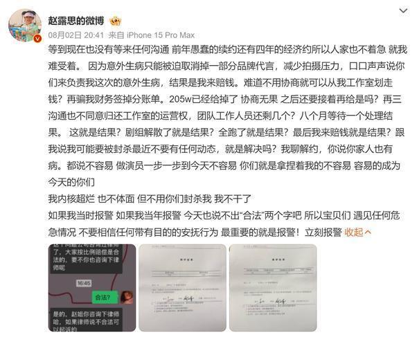 赵露思发长文控诉银河酷娱 " 划走资金、拒不沟通 ",晒出病历后开启直播。