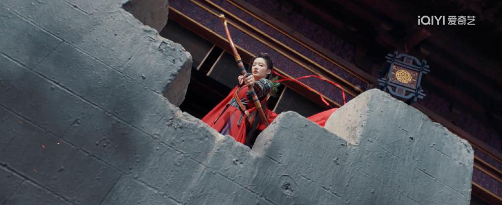 不仅造型英姿飒爽,身着一袭红衣铠甲,目光如炬,站立有型,极具女将军气质。