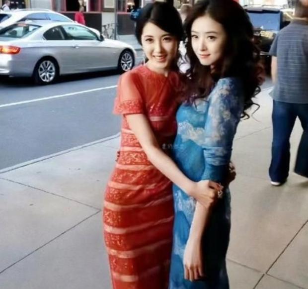 跟蒋欣合照,显得脸超级小,身材薄薄的一片,作为科班生,她的外形条件是非常不错的存在。