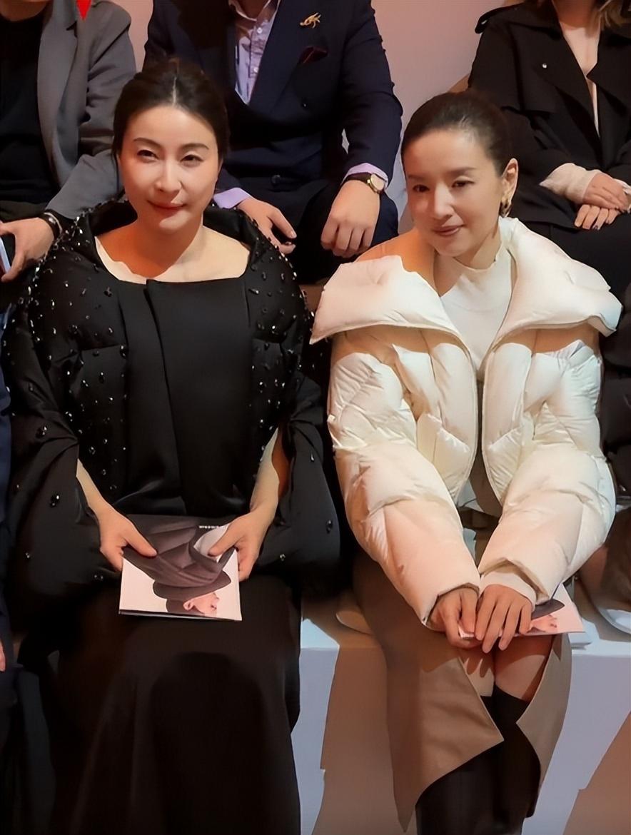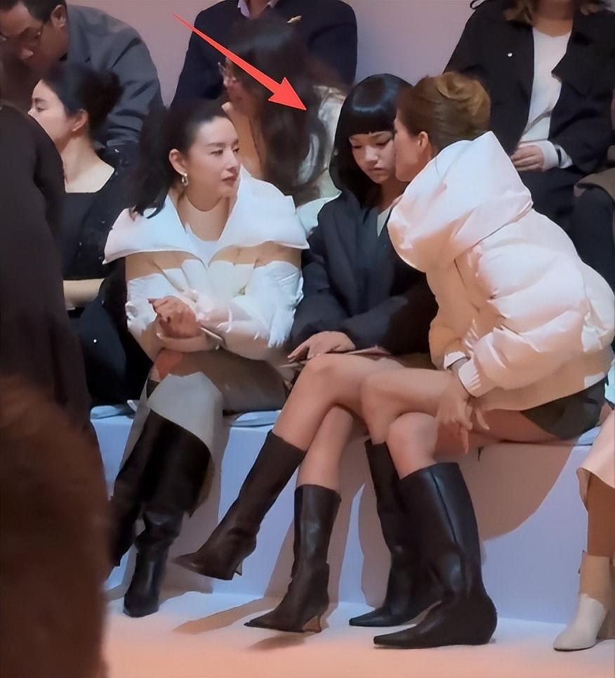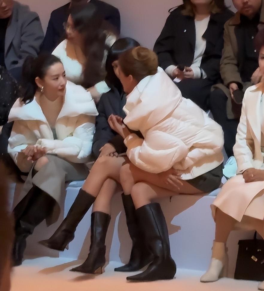 这不,在秀场看到了同行董洁,立马上前献殷勤去讨教 " 挣钱 " 的方法,整个看秀过程都在董洁交头接耳。