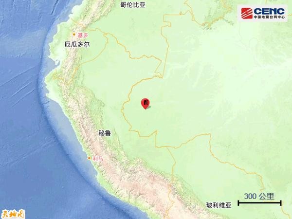 周边城市:震中300公里范围内有1座大中城市,最近为南克鲁塞罗(Cruseiro Do Sul),距震中约132公里。