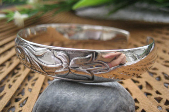 擦银布也可以用来清洗脏了的银手镯,用擦银布反复擦拭花纹银手镯脏了的部位后,银金属的光泽也会逐渐恢复。