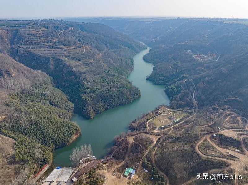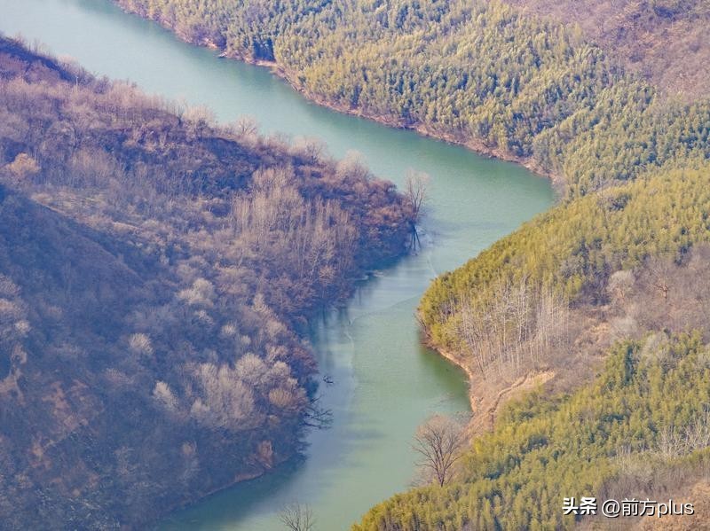 12月26日,西安天气晴好,从空中俯瞰鲸鱼沟景区,景区周边植被茂密,碧波荡漾,宛如一幅美丽的冬日画卷。