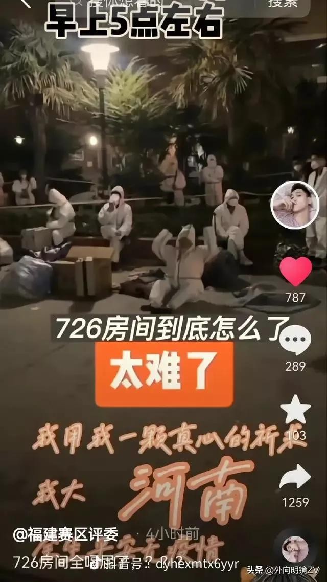 至于726宿舍传闻称有人死亡,我以为不至于,都是以讹传讹,导致大家胡思乱想,发现阳性病例,症状明显引起大家同情,希望外界注意到,赶紧采取措施,给予治疗,希望大家理性认识,不要盲目相信,引起恐慌。