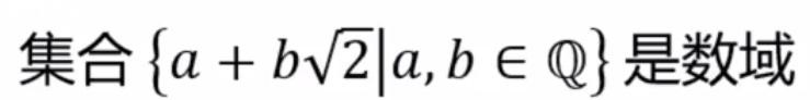 由以上定义看到,数域首先是一个集合,这个集合中的元素都是复数,每两个复数之间对于和差积商的运算都是封闭的。