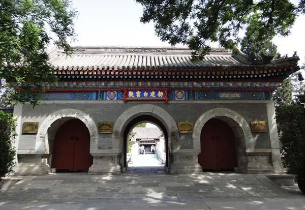 白云观位于北京市西城区白云观街9号,是道教全真三大祖庭之一,全真龙门派的发源地,始建于唐开元二十九年,初名天长观,金、元重修,后几经毁建,明初在唐代天长观旧址扩建后易名为白云观,现仅存建筑多为明清复建,由中、东、西三路及云集园组成,主要殿宇集中于中路,依次为牌楼、山门、灵官殿、玉皇殿、老律堂、邱祖殿、四御殿、戒台与云集山房等,殿内装饰以道教图案,观内殿宇恢弘,景色清幽,集南北宫观、园林特点于一身,是北京地区乃至中国现仅存规模最大的道教建筑之一,由数进四合院组成,是研究道教的实物资料,解放后是中国道教协会总部驻地,现为北京市第二批北京市重点文物保护单位中华人民共和国第五批全国重点文物保护单位。