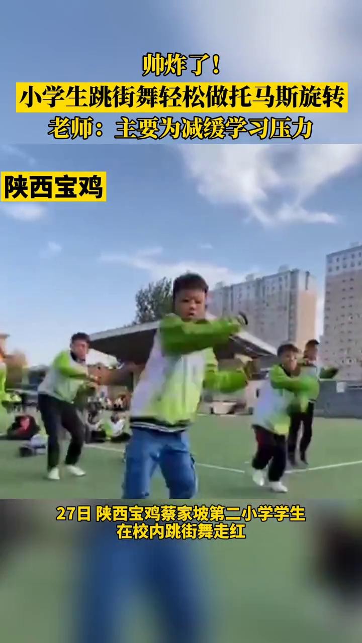 10月27日,陕西宝鸡,蔡家坡第二小学学生在校内跳街舞走红。据悉,街舞课程是从孩子们9月开学时展开,每周五下午都会有两节。