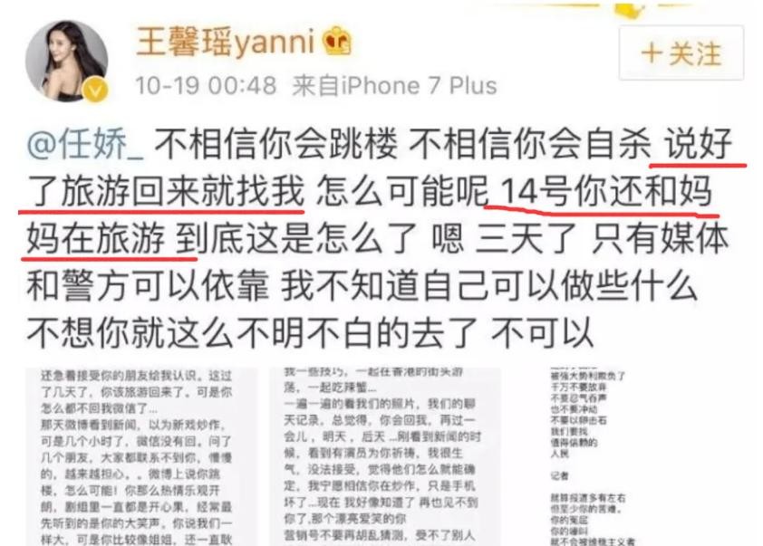 最主要的是,任娇的圈中好友一致认为她是个性格开朗的“开心果”,完全没有一点抑郁倾向。