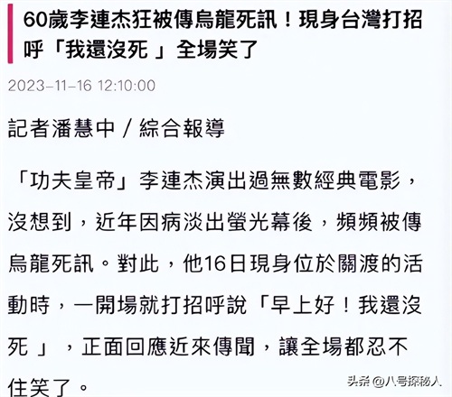 这也导致李连杰曾经在出席活动时,都拿“不用担心,还没死”作为打招呼的开场白。