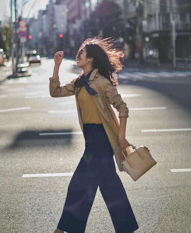 (2)阔腿裤尽量选择九分款的长度,特别是对小个子女性来说,过长的阔腿裤搭配小短靴,稍有不当就会非常显腿粗。