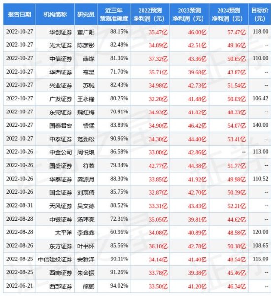 证券之星数据中心根据近三年发布的研报数据计算,西部证券熊鹏研究员团队对该股研究较为深入,近三年预测准确度均值高达94.02%,其预测2025年度归属净利润为盈利33.5亿,根据现价换算的预测PE为34.31。