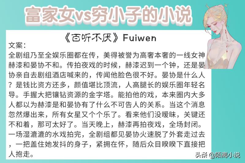 点评:这篇还是挺不错的!我看了大半本,只是到在一起甚至还意外怀孕之后有一点疲累。女主是女神影后级别的女演员,口碑好低调演技好不炒作,对男主会很软很会撒娇;男主是年轻有为有原则的导演,有颜有才,也很低调不炒作没有绯闻,还挺会撩女主的,对女主非常宠溺。