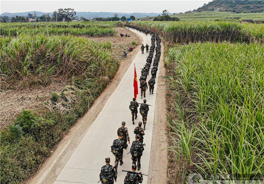 队伍整齐行进在山野蔗林。广西新闻网通讯员 任旺 摄