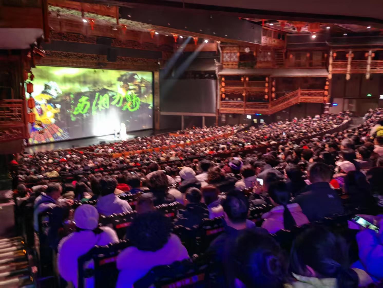 1月29日晚7时许,张家界魅力湘西大剧院灯火辉煌,三千个