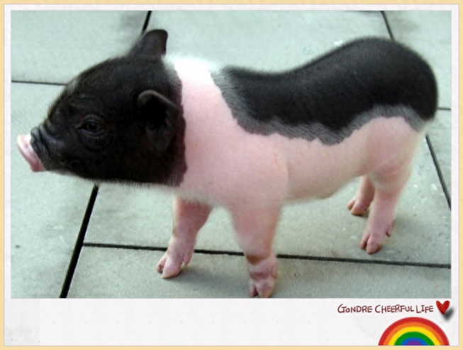 这种小猪只有茶杯那么大,有塔姆沃思猪和格洛斯特郡花猪杂交而成。刚出生不久的茶杯猪比家猫还要娇小,差不多半斤重。