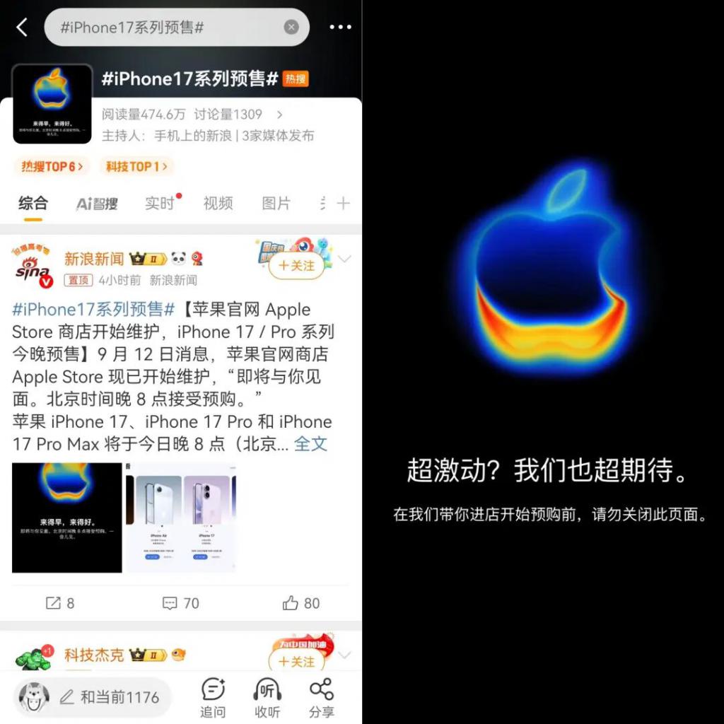 苹果发布会刚开完,号称 " 近几年最有诚意 " 的 iPhone17 系列直接让互联网炸开了锅,不少还用着 iPhone13、iPhone15 的用户,纷纷表示 " 这次真该换手机了 "。上架首日,天猫 Apple Store 官方旗舰店 iPhone 17 全系预约量就同比增长了近 3 倍,京东数据则显示,预约开启 6 小时,iPhone17 系列新品预约总量突破 200 万。
