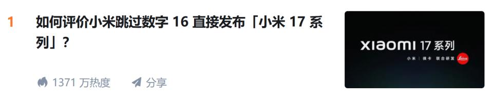 小米如果这波硬着头皮发小米 16,就会在名字上被 iPhone 17" 压一代 "。