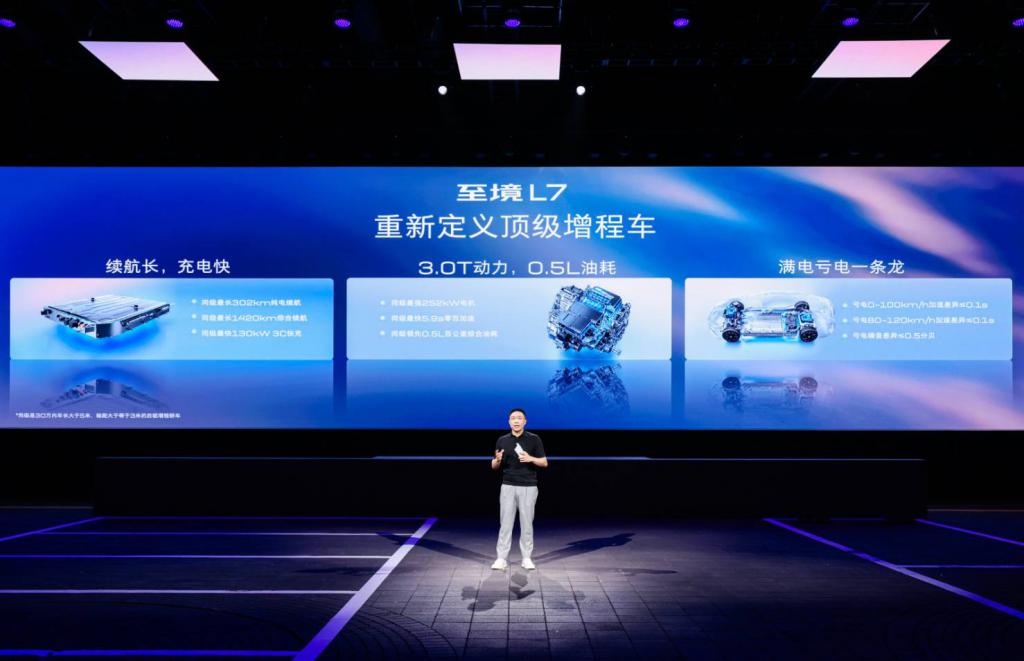 新品牌下的第一辆车是至境 L7,一辆定位在 20-30 万元级别的大中型增程轿车。