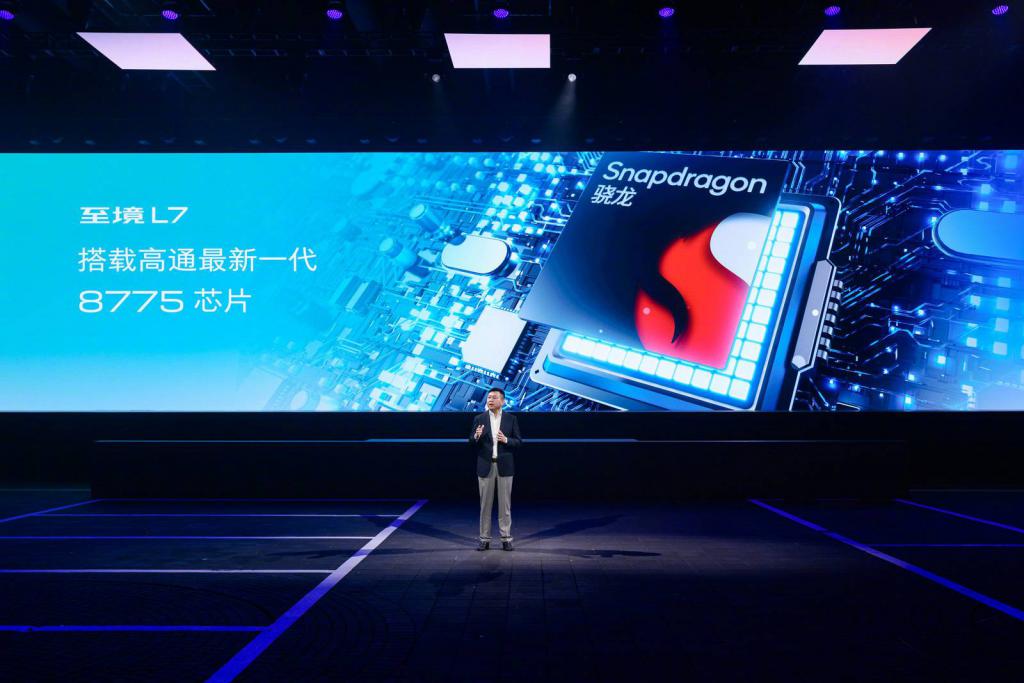 至境 L7 座舱的核心是一块高通骁龙 SA8775P 芯片,其算力是 72TOPS(稠密),并且该芯片支持舱驾一体,能联动智能交互与智能辅助驾驶两大系统。