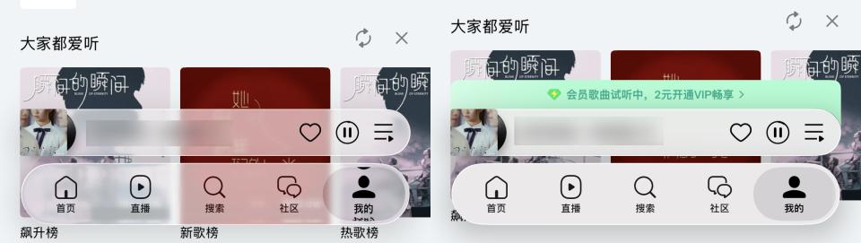包括像 QQ 音乐这些做了液态玻璃适配的 App。