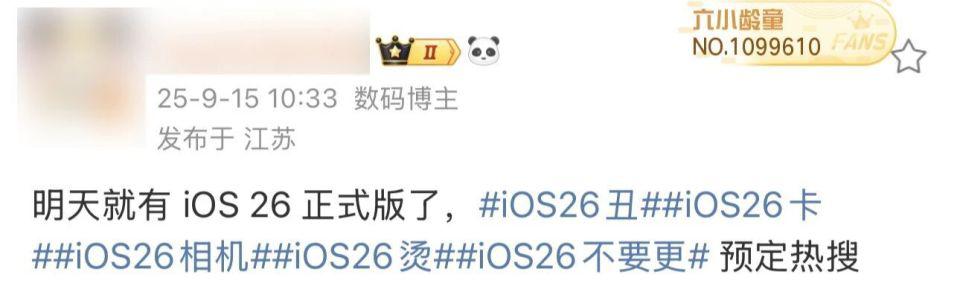 结果一大早起来,就看见热搜上面挂着「iOS26 丑」的话题了。