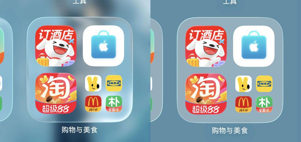文件夹部分原本会折射壁纸的液态玻璃。