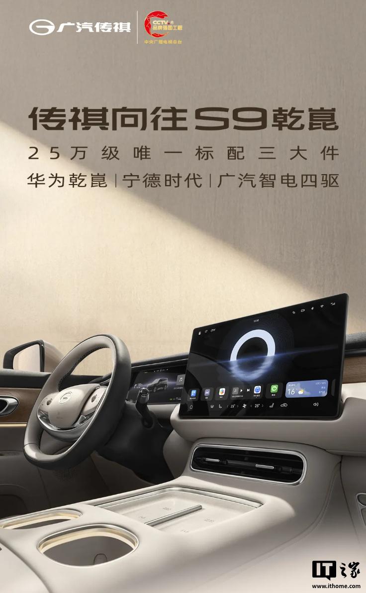 IT 之家 9 月 17 日消息,广汽传祺官方昨日发文宣布,传祺向往 S9 汽车标配鸿蒙座舱 HarmonySpace 5,并号称 25 万级唯一标配三大件:华为乾崑 + 宁德时代 + 广汽智电四驱。