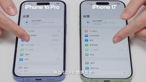 ▲左边为 iPhone 17,右边为 iPhone 16