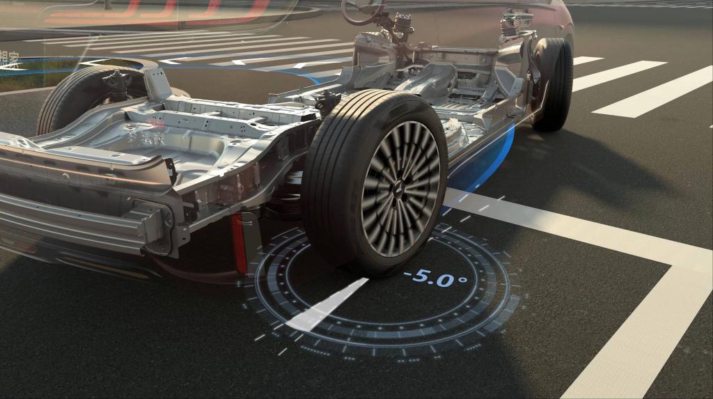 为了化解 D 级空间与笨重驾控之间的矛盾,岚图引入了首次搭载在混动 MPV 上的智能后轮转向系统。它能提供双向共 10 度的转向角,显著缩短车辆的转弯半径,让这台 5.3 米长的大车在双车道能轻松一把掉头。