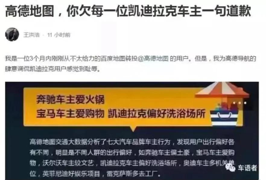 8 年前我的我,不幸是名凯迪拉克车主。结果高德地图发了份报告,指出 " 凯迪拉克车主常去洗浴推拿场所 "。