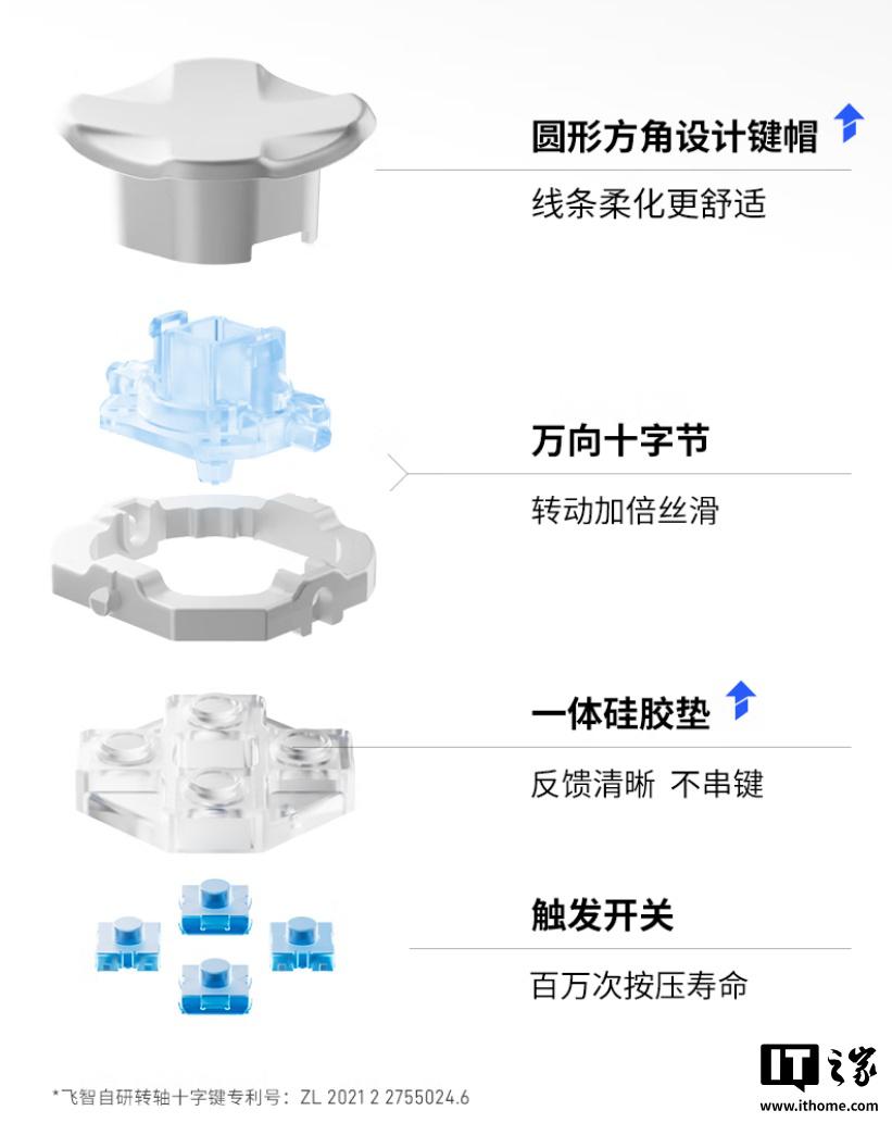 飞智冰原狼 4 还升级了急停马达,以及转轴十字键 2.0,按键线条更柔和、使用寿命更长。