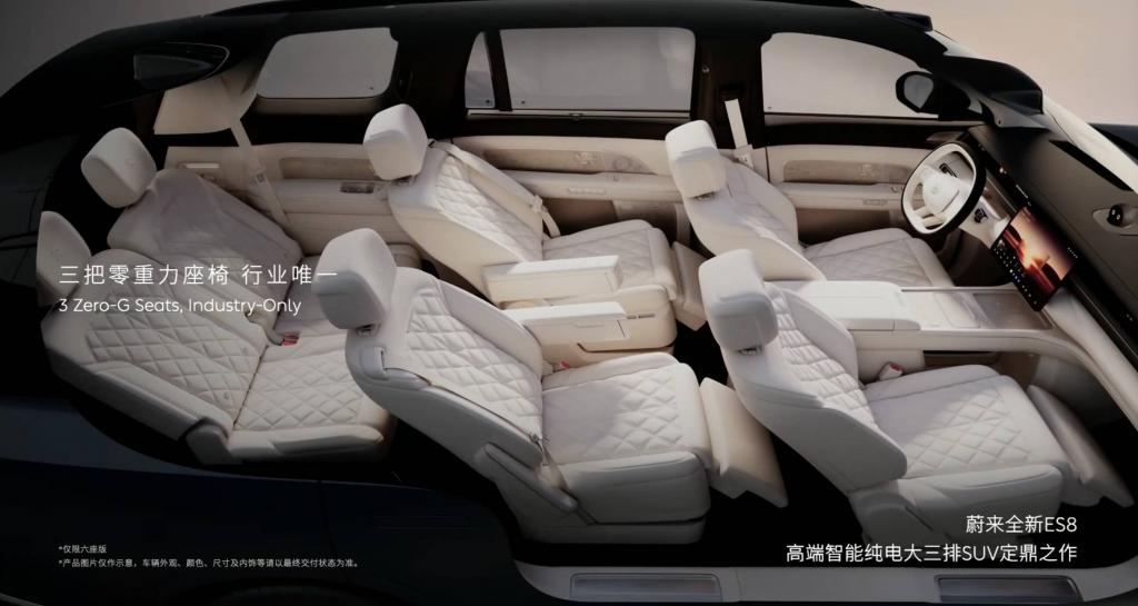 这种对「价值感」的直接表达,在座椅上同样有所体现。全新 ES8 在车内布置了三把零重力座椅,除了副驾驶位,后排右侧的乘客也能享受到完全舒展的躺姿。