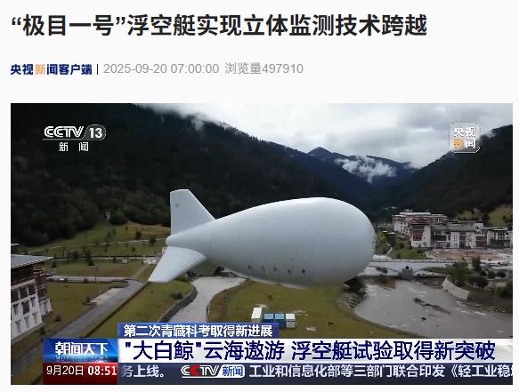 IT 之家 9 月 20 日消息,据央视新闻报道,记者从中国科学院空天信息创新研究院获悉,近日,第二次青藏科考的科研团队在西藏鲁朗地区成功开展了 " 极目一号 " 浮空艇大气观测试验。通过多载荷协同观测,实现了浮空艇从单点采样到立体监测的技术跨越。