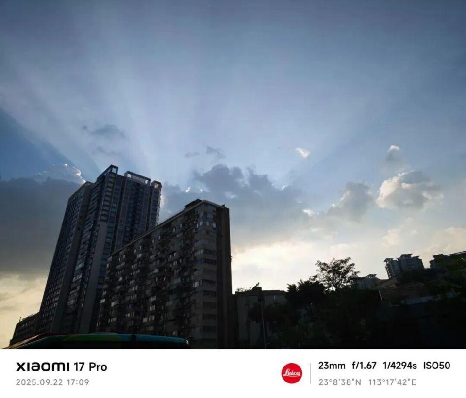比如下面这种场景,很容易出现天空过曝或者大楼死黑的情况,但小米 17 Pro 都没有。