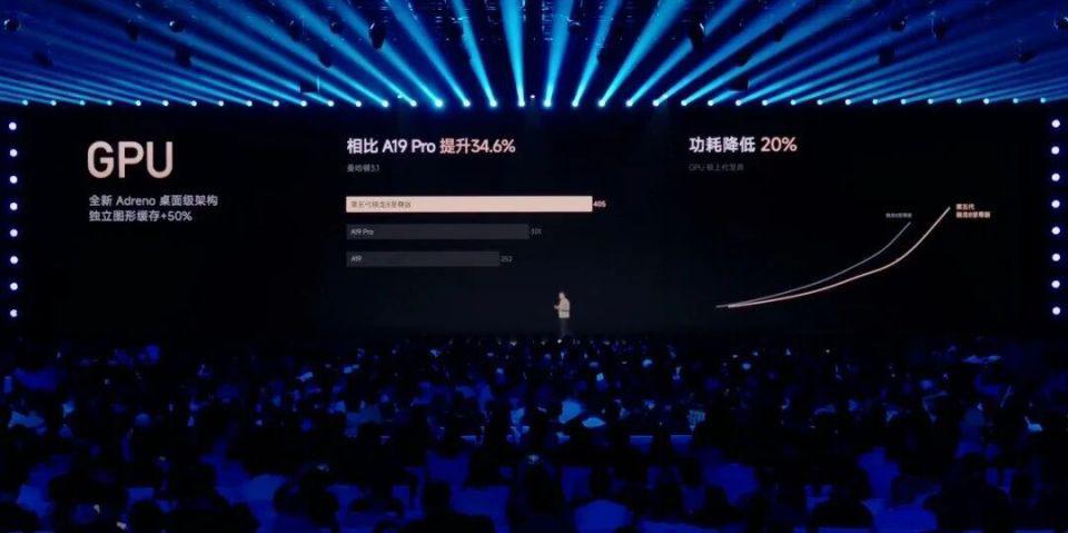 新一代 Adreno GPU 加持,频率达到 1.2GHz,而且狠狠堆了 18MB 的独立高速显存。