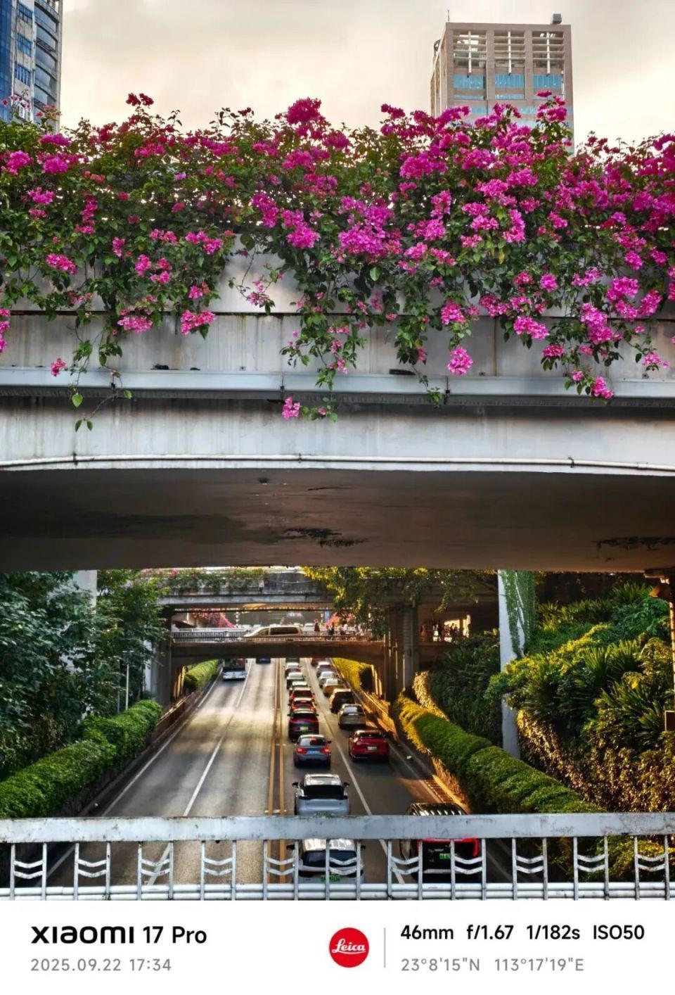再比如说这张,无论是桥下阴影部分,还是桥上的花朵,以及天空的高光,都还原得很到位。