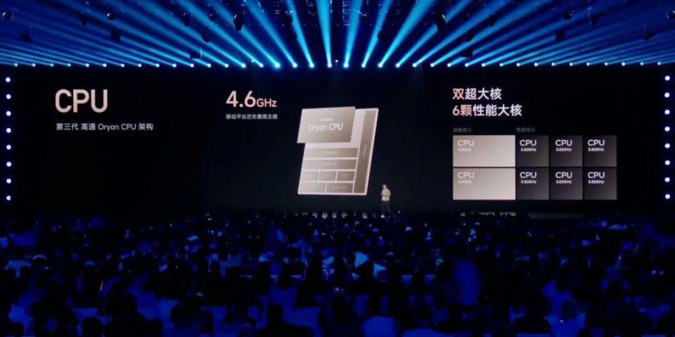 CPU 为第三代 Qualcomm Oryon CPU,包含 2 颗 4.6GHz 超大核、6 颗 3.62GHz 性能大核,共 24MB 低延迟大缓存。
