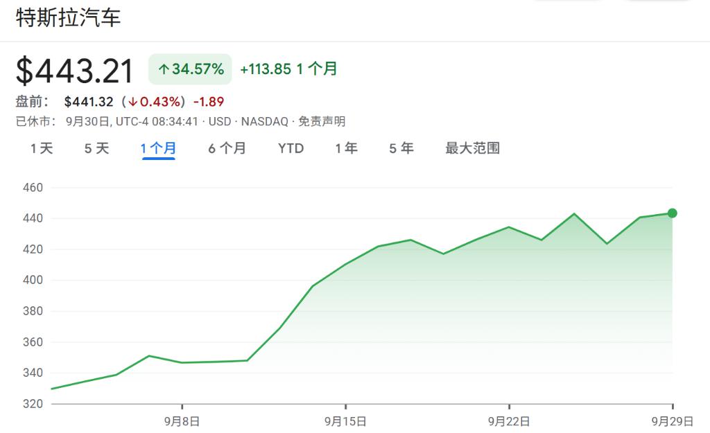 自 8 月底以来,特斯拉股价已飙升 34%,远超同期标普 500 指数 3% 的涨幅。推动此轮上涨的核心动力,源于投资者对其第三季度交付量将超出预期的憧憬,以及马斯克本人愈发积极的姿态——他在社交平台 X 上发帖称 "daddy is very much home"(家长回来了),并增持了价值 10 亿美元的公司股票,这被市场解读为他将更专注于特斯拉业务的信号。