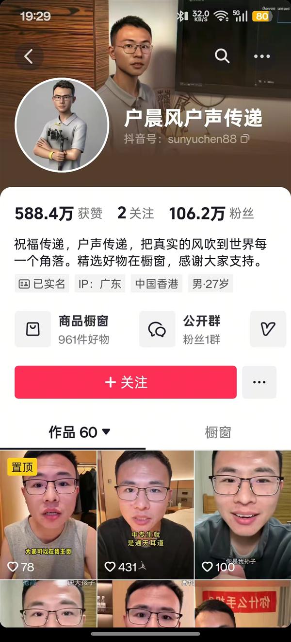 现在,有网友发现,网红户晨风的正在遭遇销号,从晒出的图片看,其账号已经不存在,不过目前他的抖音号还没有遭遇这个情况。