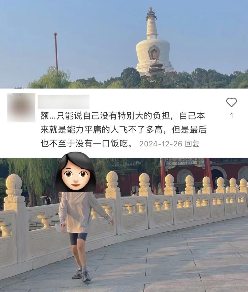 剧本之外,更多北京姑娘其实成长于普通家庭。她们没有戏剧化的家世背景,却依然自带一股 " 北京式底气 " —— " 谈不上什么大富大贵,但家在这儿,根也在这儿,心里就有份天然的踏实。在父母家蹭吃蹭喝,也能托住生活的基本盘。"