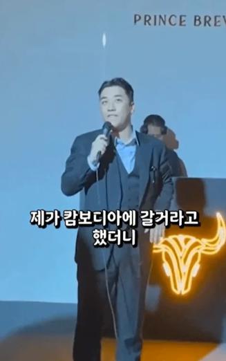 巧的是,在韩媒去年曝光的一段视频中,韩国前男星李胜利在柬埔寨举行的某次商业活动上登台发言称:" 我和朋友们说,来柬埔寨看看吧,这里没有危险。 柬埔寨是亚洲最好的国家。"