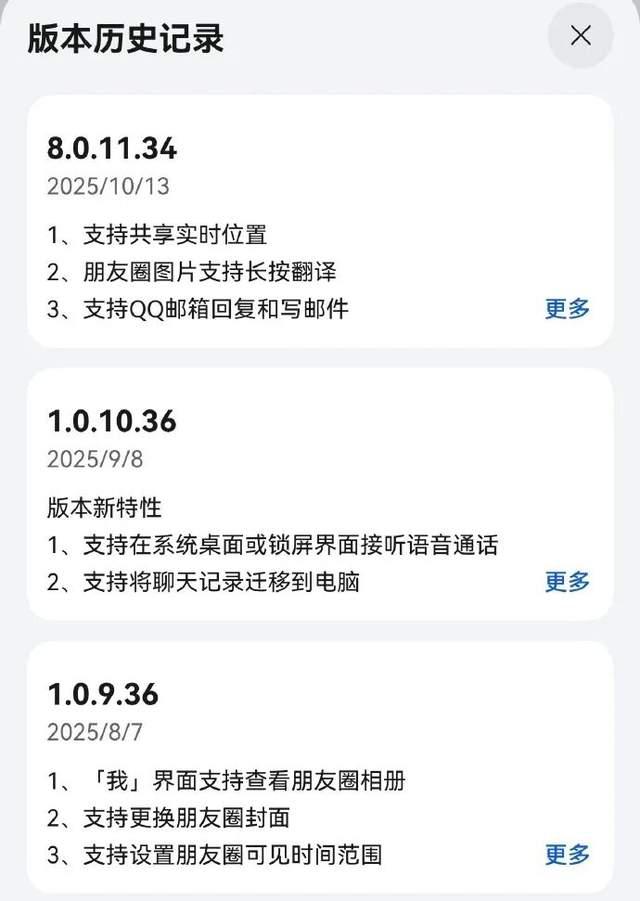 10 月 13 日晚,微信 8.0.11.34forHarmonyOS 发布,版本号从 1.0.x 跳到 8.0.x,看齐安卓、iOS 两大平台。微信员工对此回应称,一是功能已基本看齐 8.0 版,二是避免用户疑惑。