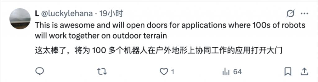 还有网友开始幻想让 100 个这样的机器人在户外协同工作了,那场景可了不得啊了不得:
