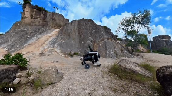 不仅能从陡坡一路滑下,还顺势翻了个后空翻,表演了段 breaking。