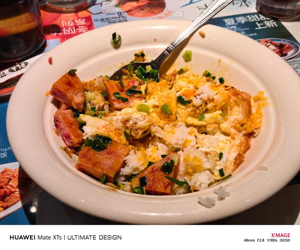室内场景里,有红枫原色镜头的助力,即便是被人造光源影响的食物颜色,也被 Mate XTs 非凡大师还原了出来。