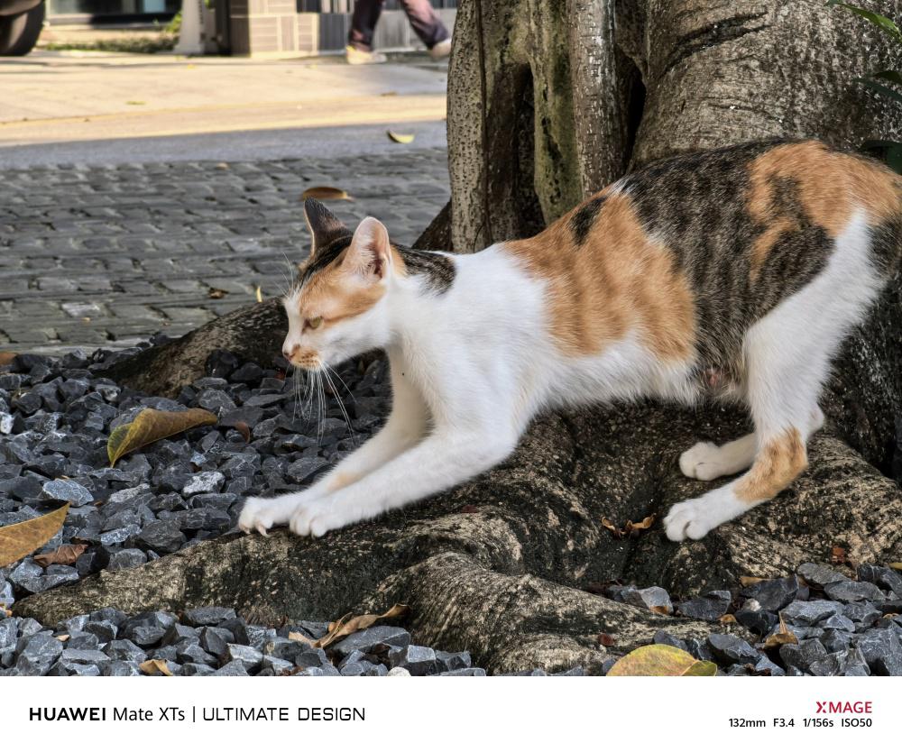 一些不可控的运动对象,比如猫,Mate XTs 非凡大师的对焦精度可以精确到动物的眼睛,并持续追焦和锁定。所以,即便是动物的运动幅度比较大,它还是能够捕捉到许多细节。