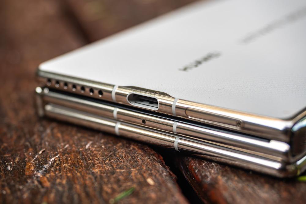 其次,华为在很窄小的空间里,给 Mate XTs 非凡大师的充电口添加了一层注塑,可以避免长期盲插充电口导致的接口变形或磨损,视觉上也能让细微之处看起来更精致。