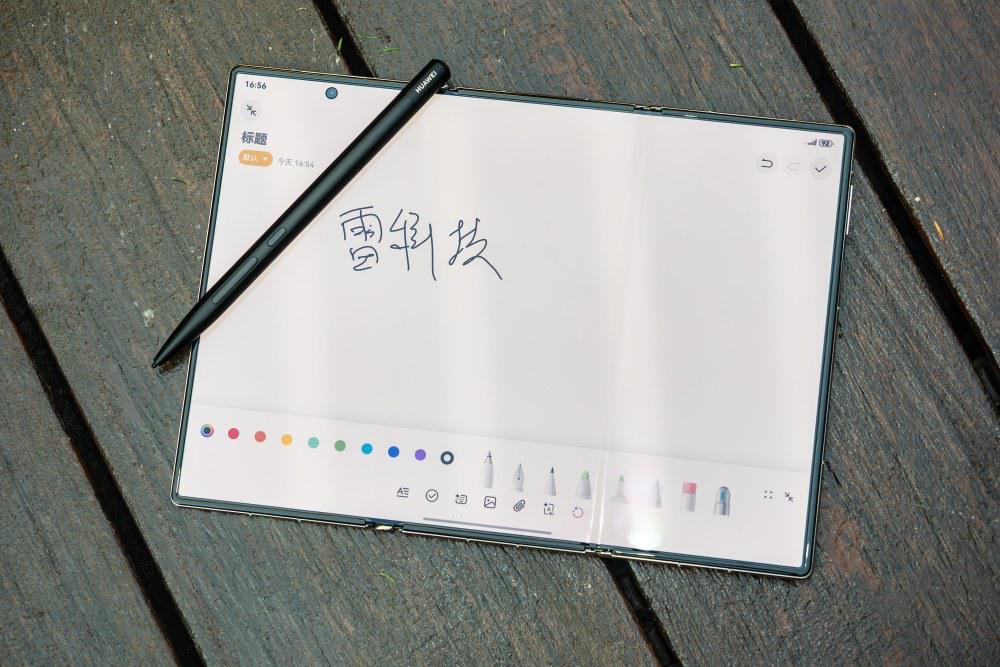 对了,这一代三折叠支持了华为的 M-Pen3 手写笔,平时有写写画画的需求,平坦的屏幕表面也有利于书写体验的提升,所以屏幕的平整度关系到整个书写体验的好坏。