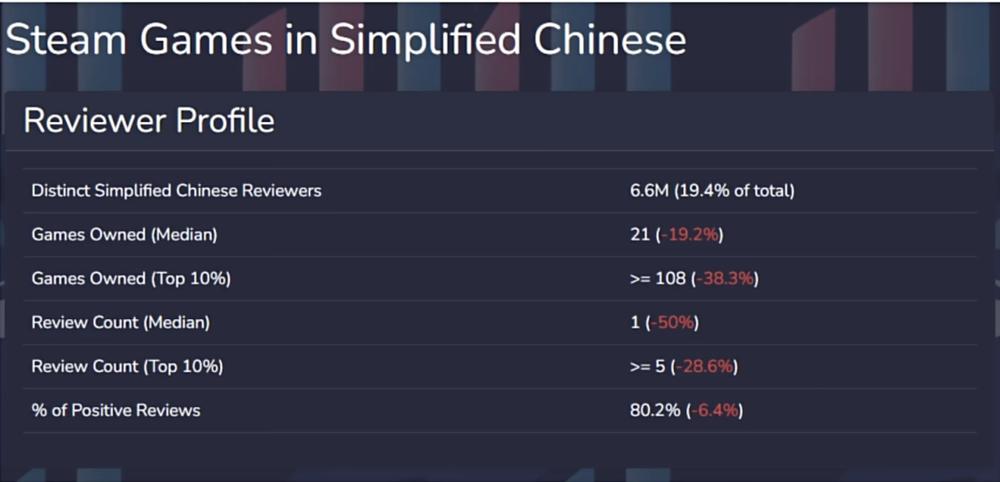 不过,Steam 平台上的中国玩家基数庞大,且更乐于表达自身观点,这就容易放大差评的整体影响力。