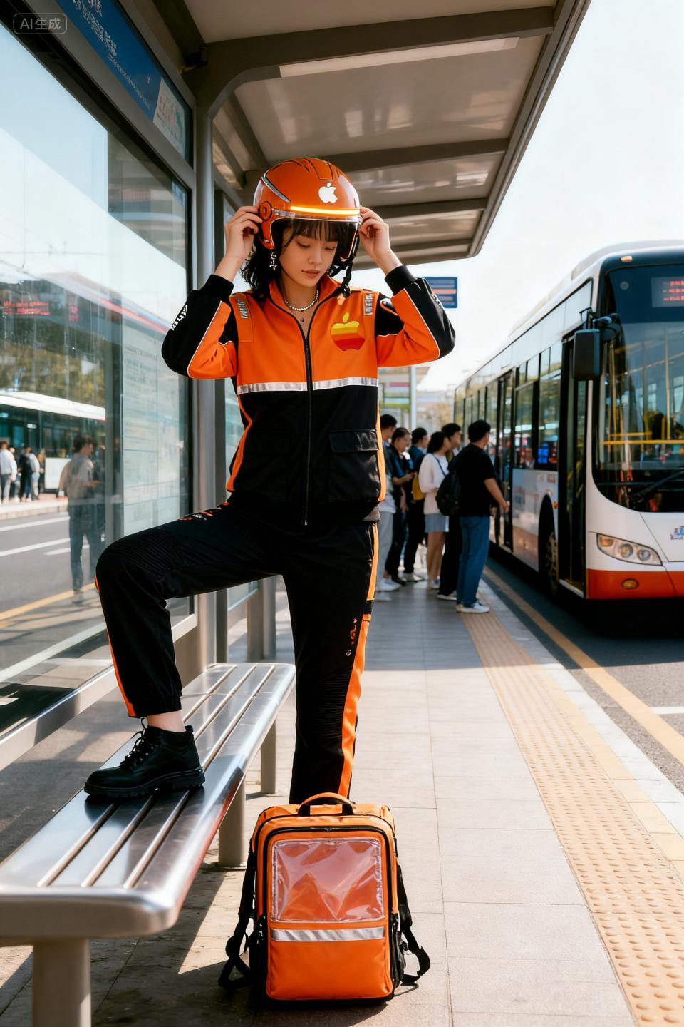 我用 iPhone 17 Pro 的星宇橙,设计了一套苹果外卖骑手服,还用 AI 拍出时尚大片